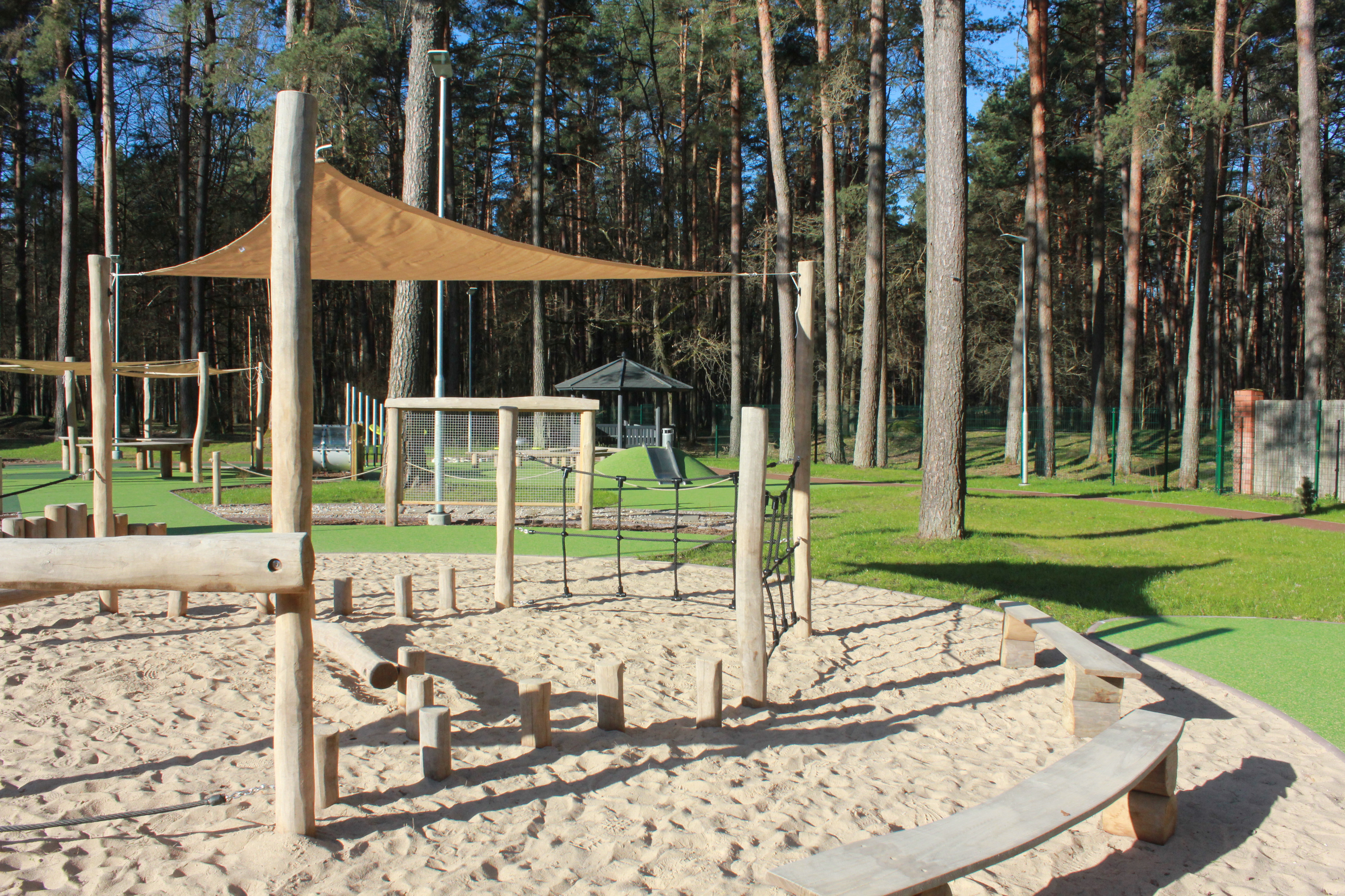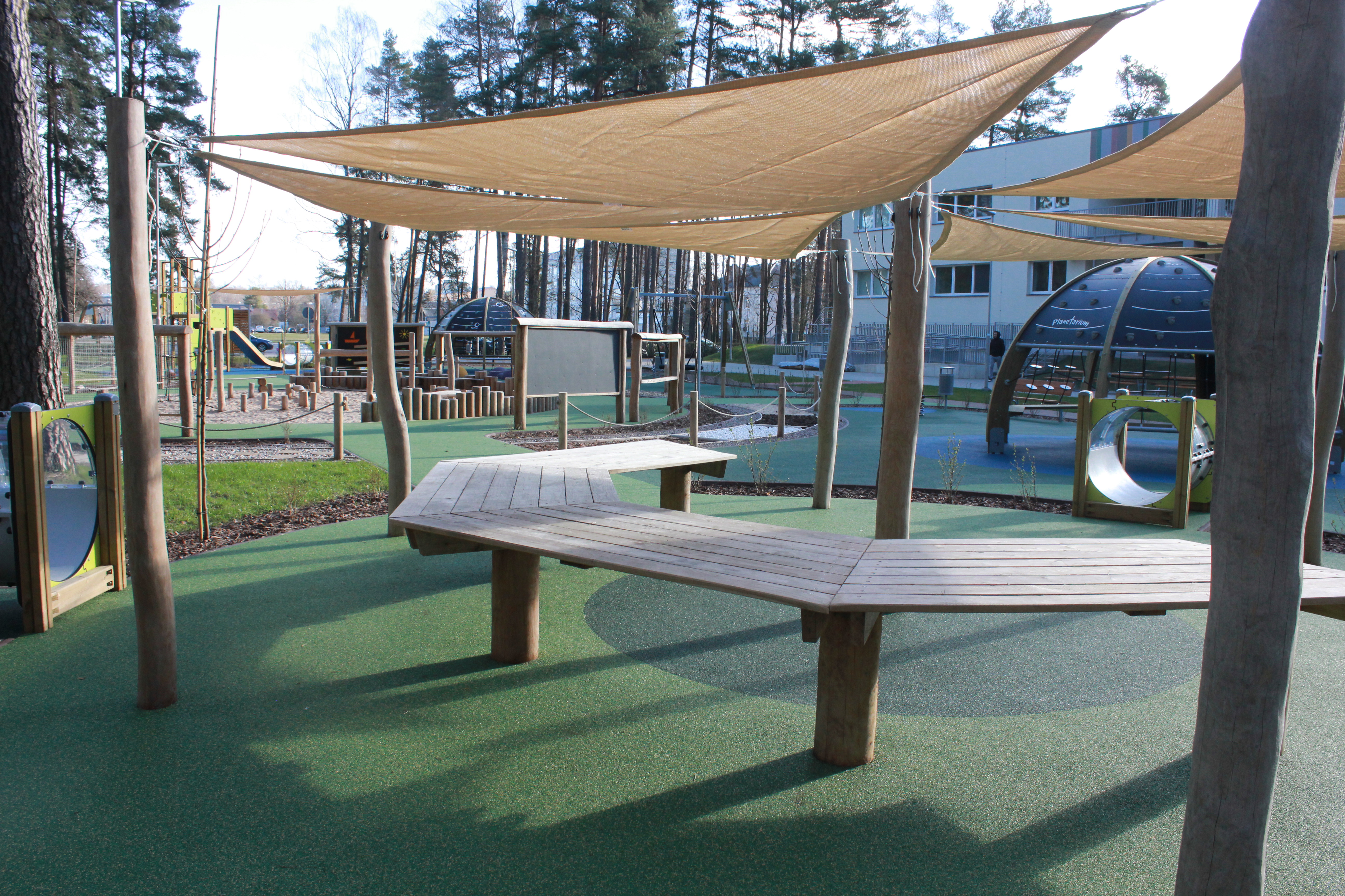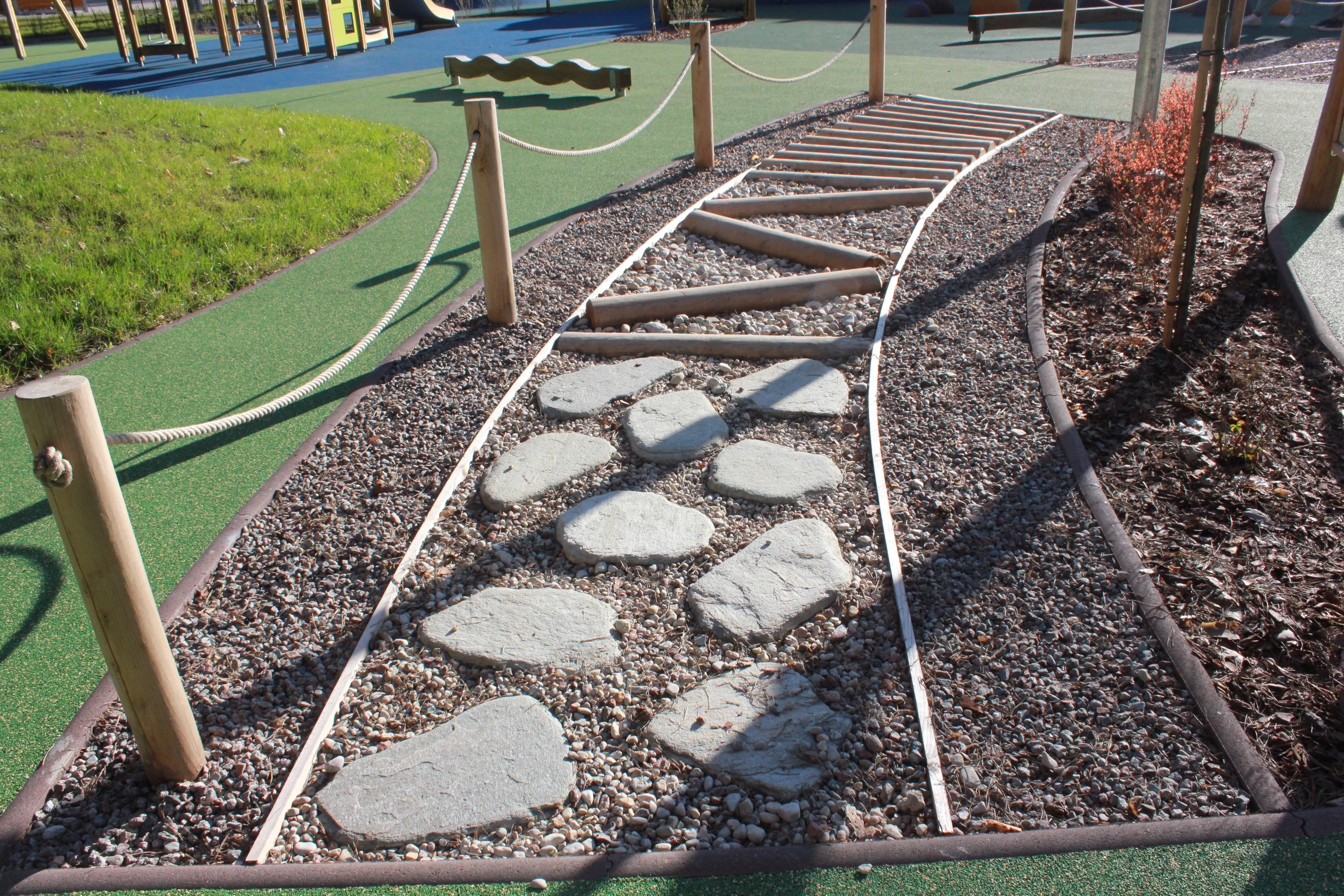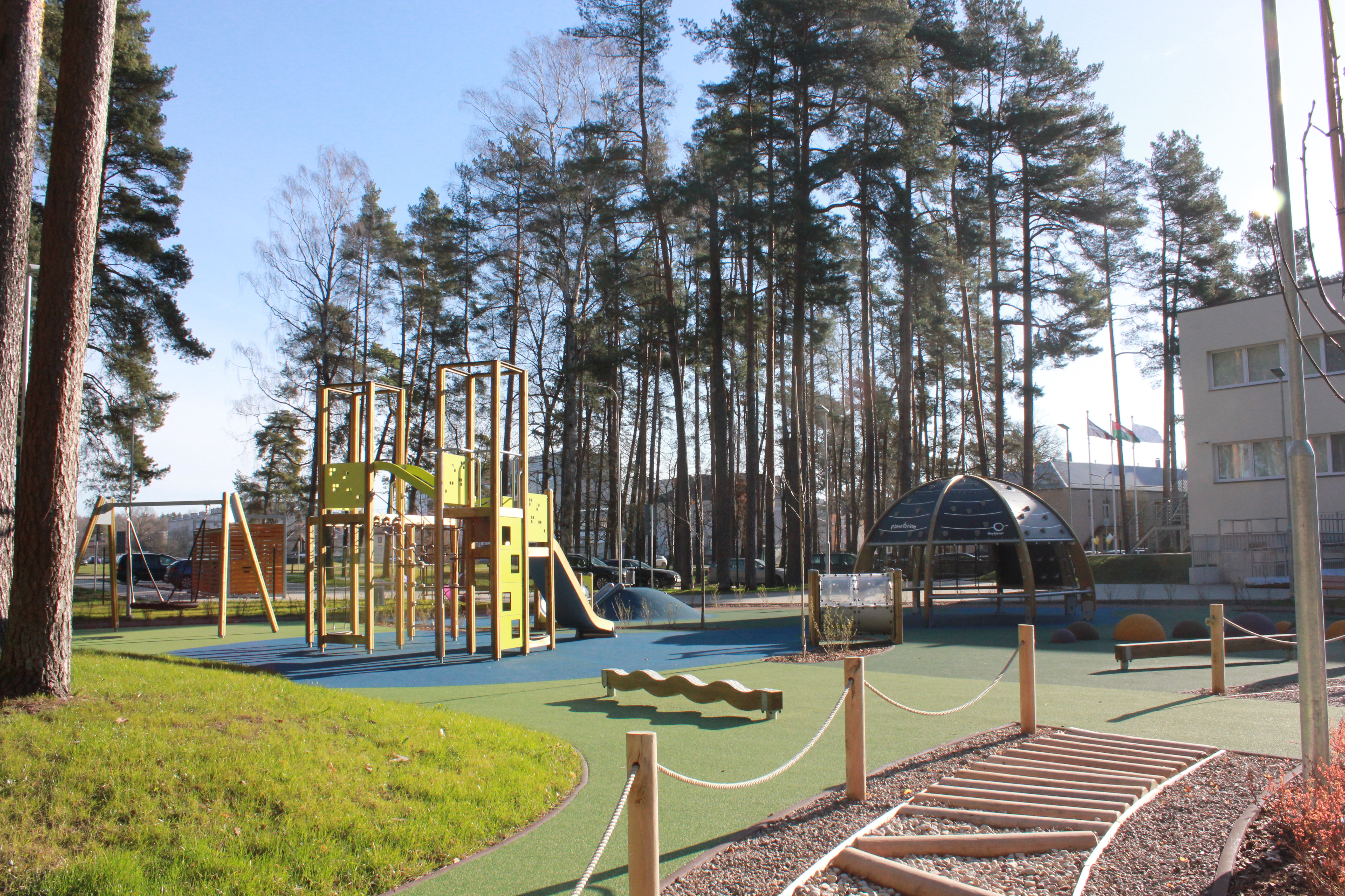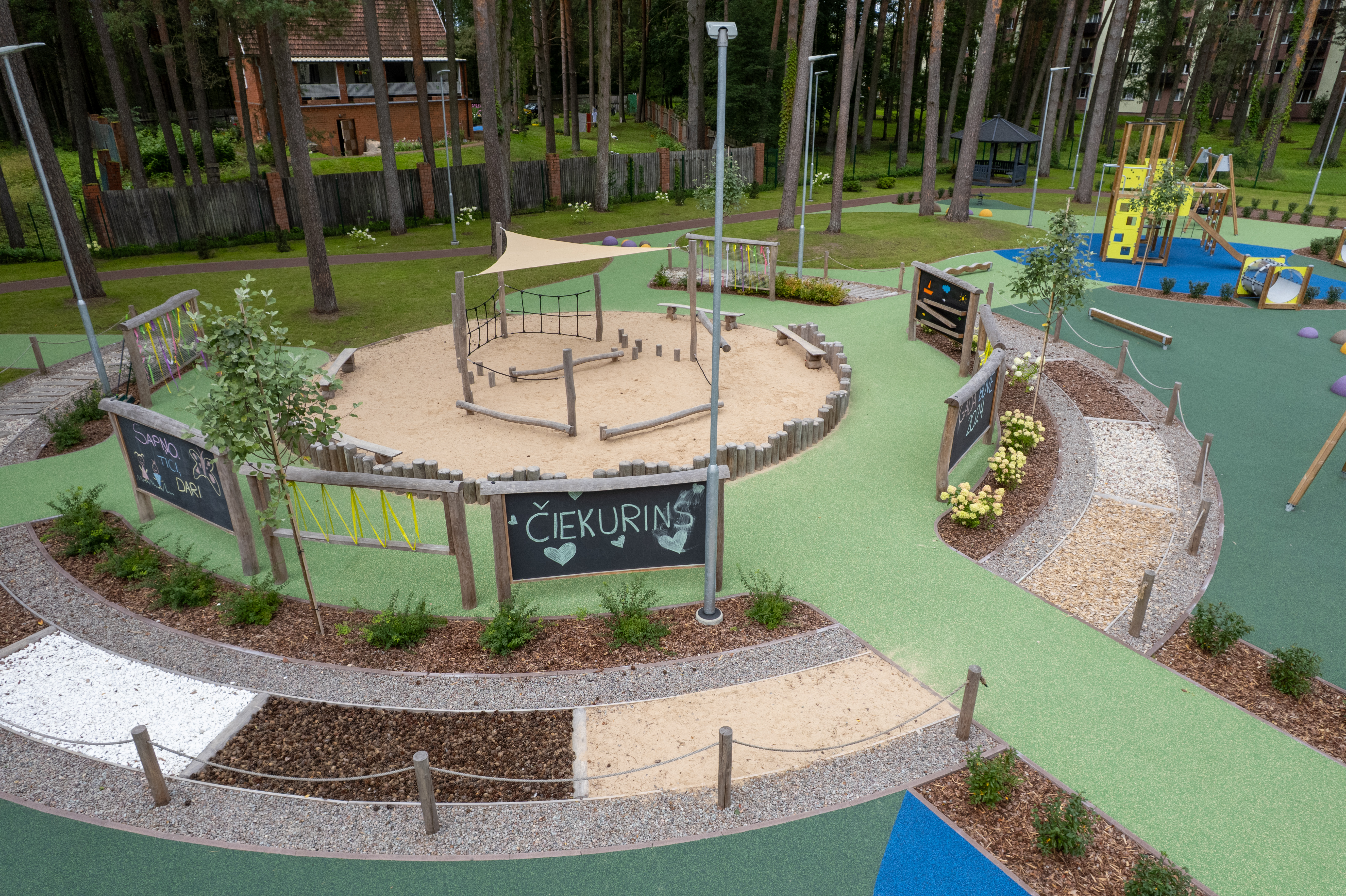Teritorijas pārbūves darbi bērnudārza vajadzībām, t sk., demontāžas darbi, zemes darbi, bruģa un lietā gumijas granulu seguma ieklāšana, sēta zāliena ierīkošana, betona apmaļu izbūve, kā arī tika veikta labiekārtošanas elementu izgatavošana un montāža. Sajūtu takas ierīkošana. Augu stādīšana. Teritorijas elektroapgādes izbūve.
